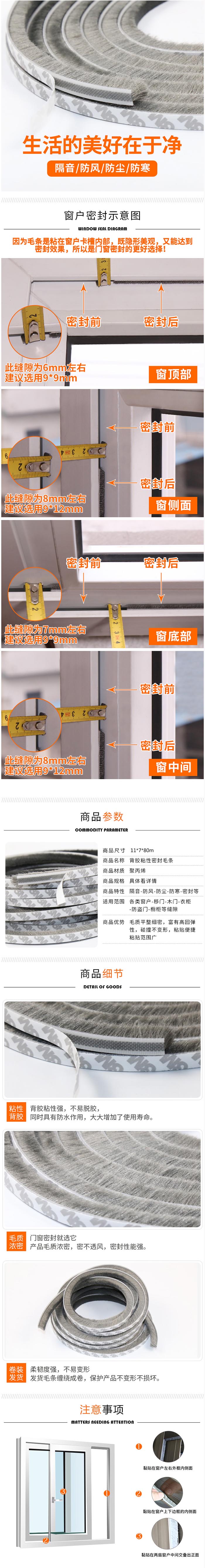 鋁合金門窗密封條塑鋼窗戶保溫隔音自粘型玻璃木門縫防風(fēng)保暖毛條11*7*80M